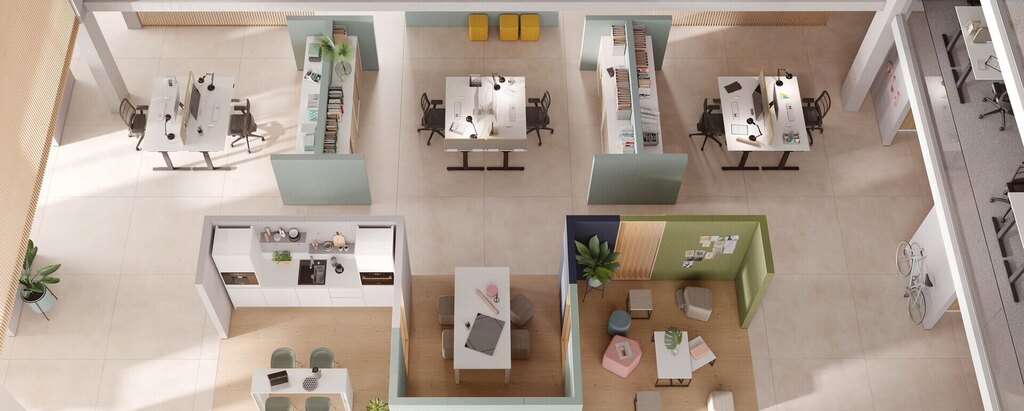 Kombination aus Funktionalität, Ergonomie und Design für Einzel- und Teamarbeitsplätze – inkl. Zonierung, Pausenbereiche und flexibler Arbeitsplatzgestaltung.